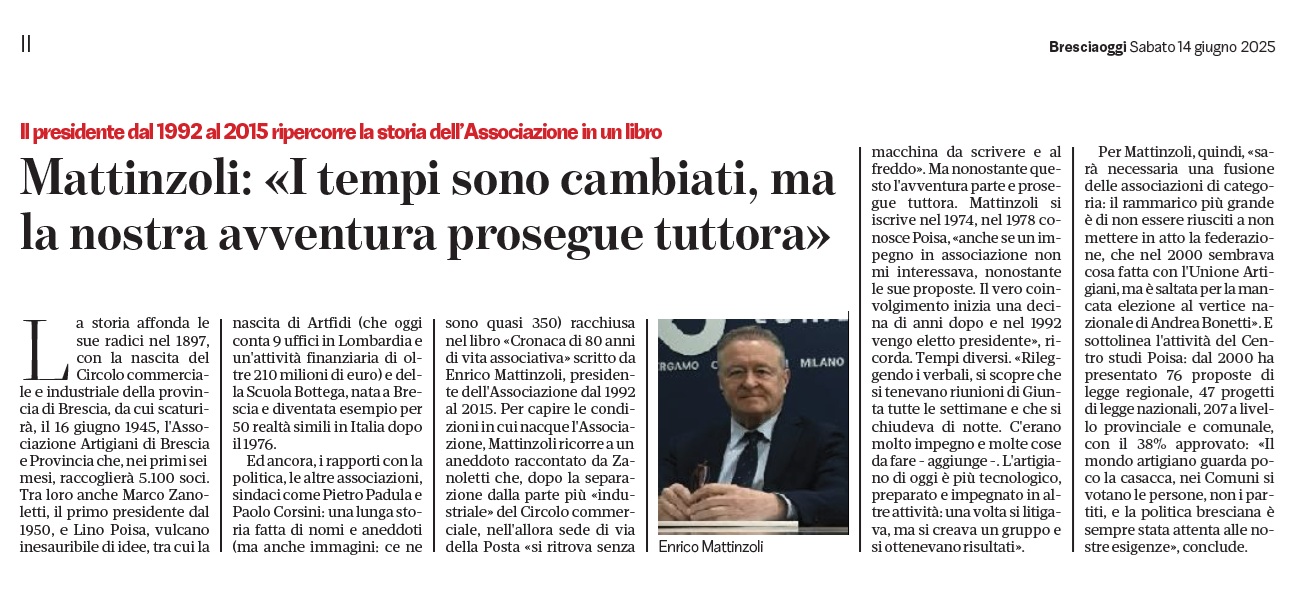 MATTINZOLI: «I TEMPI SONO CAMBIATI, MA LA NOSTRA AVVENTURA PROSEGUE TUTTORA»
